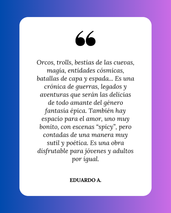 📖 Si amás las sagas de fantasía épica con mapas, razas legendarias, batallas colosales y misterios que se revelan con cada página, este libro es para vos. Ideal para lectores fanáticos de los mundos vastos, las intrigas ancestrales y los destinos forjados en fuego.